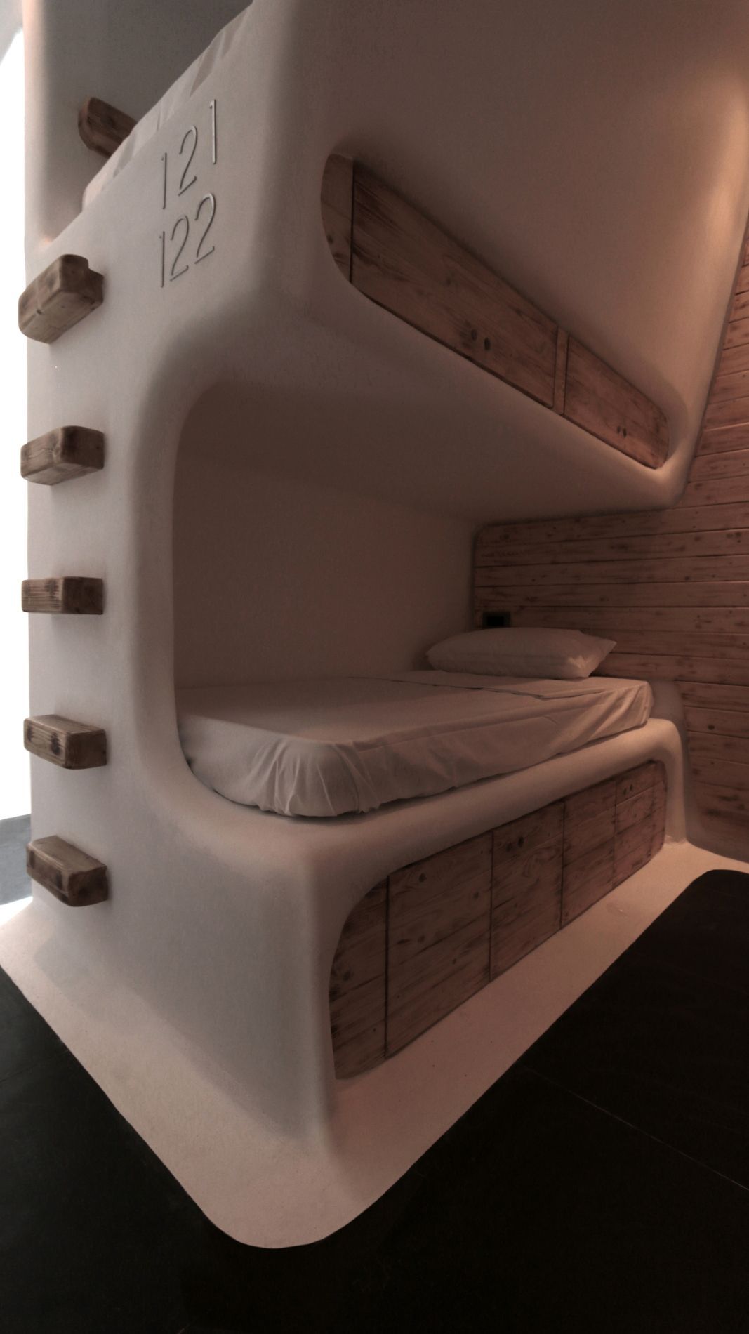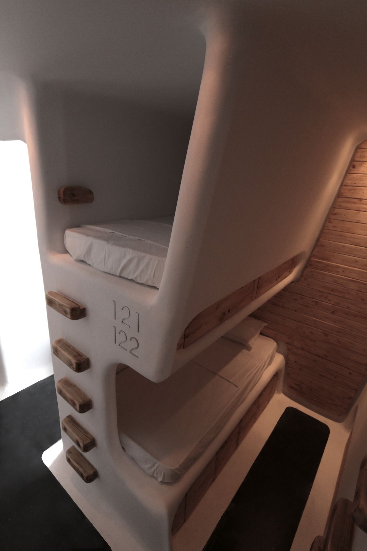 A small capsule room that can accommodate two people and it has their own shower and toilet.
